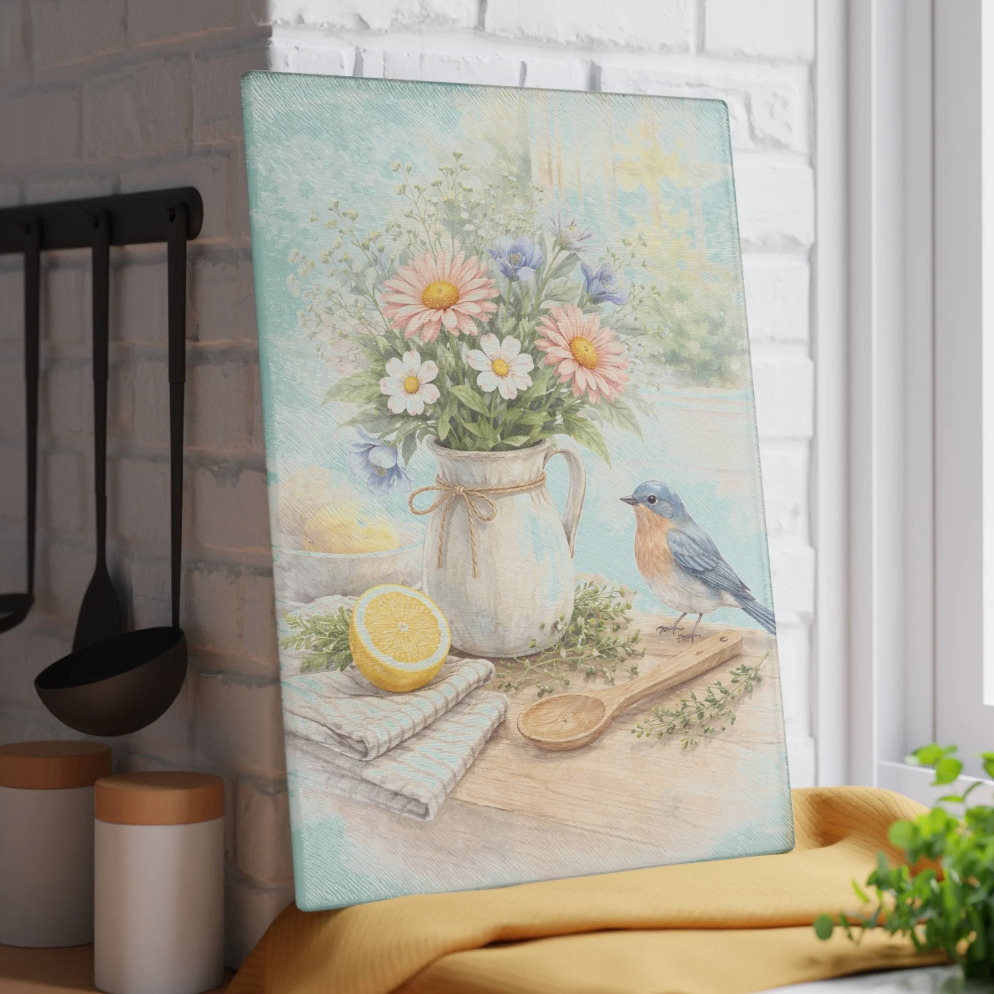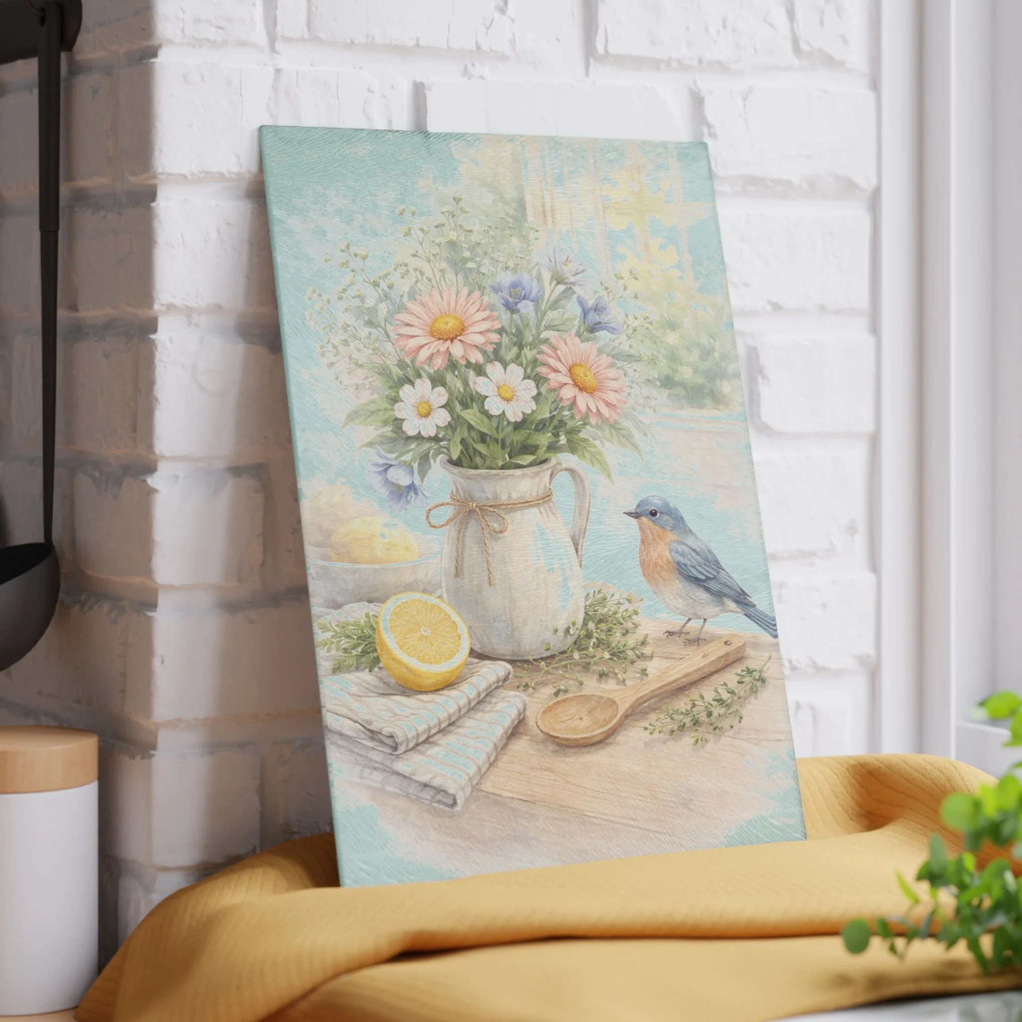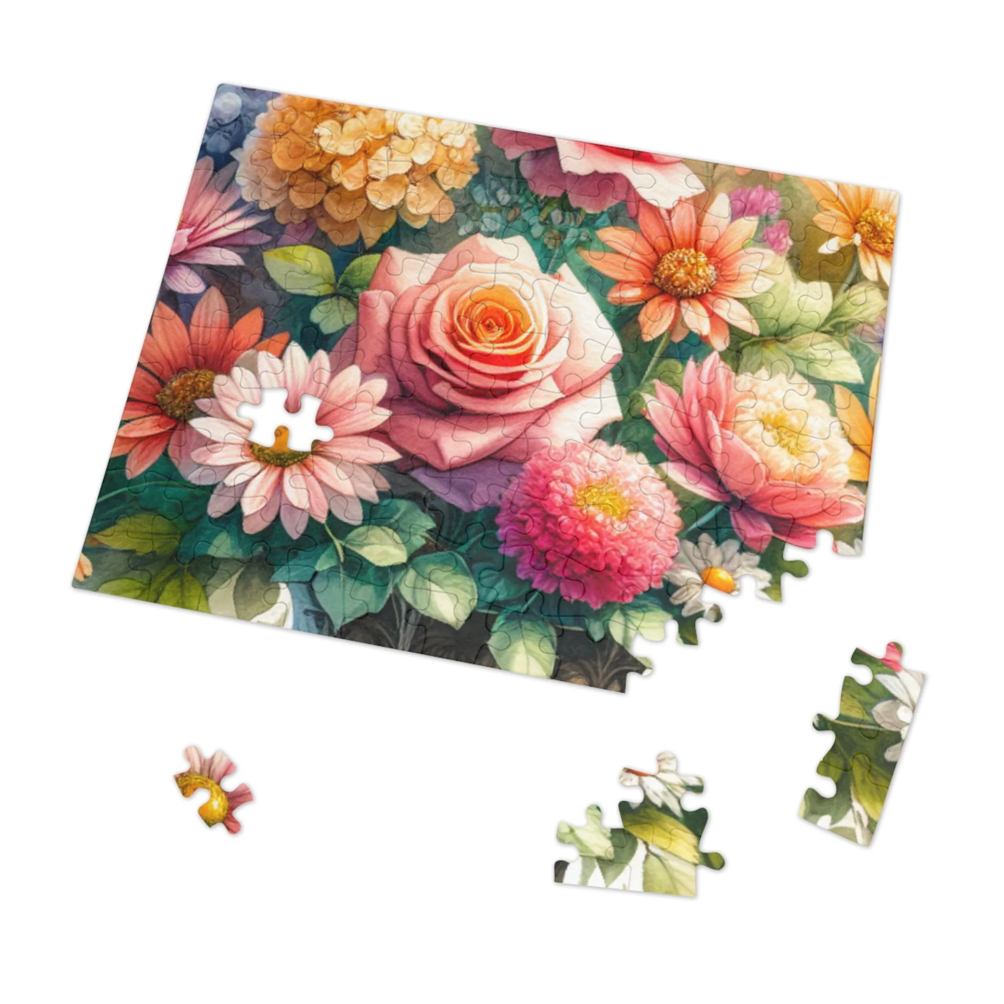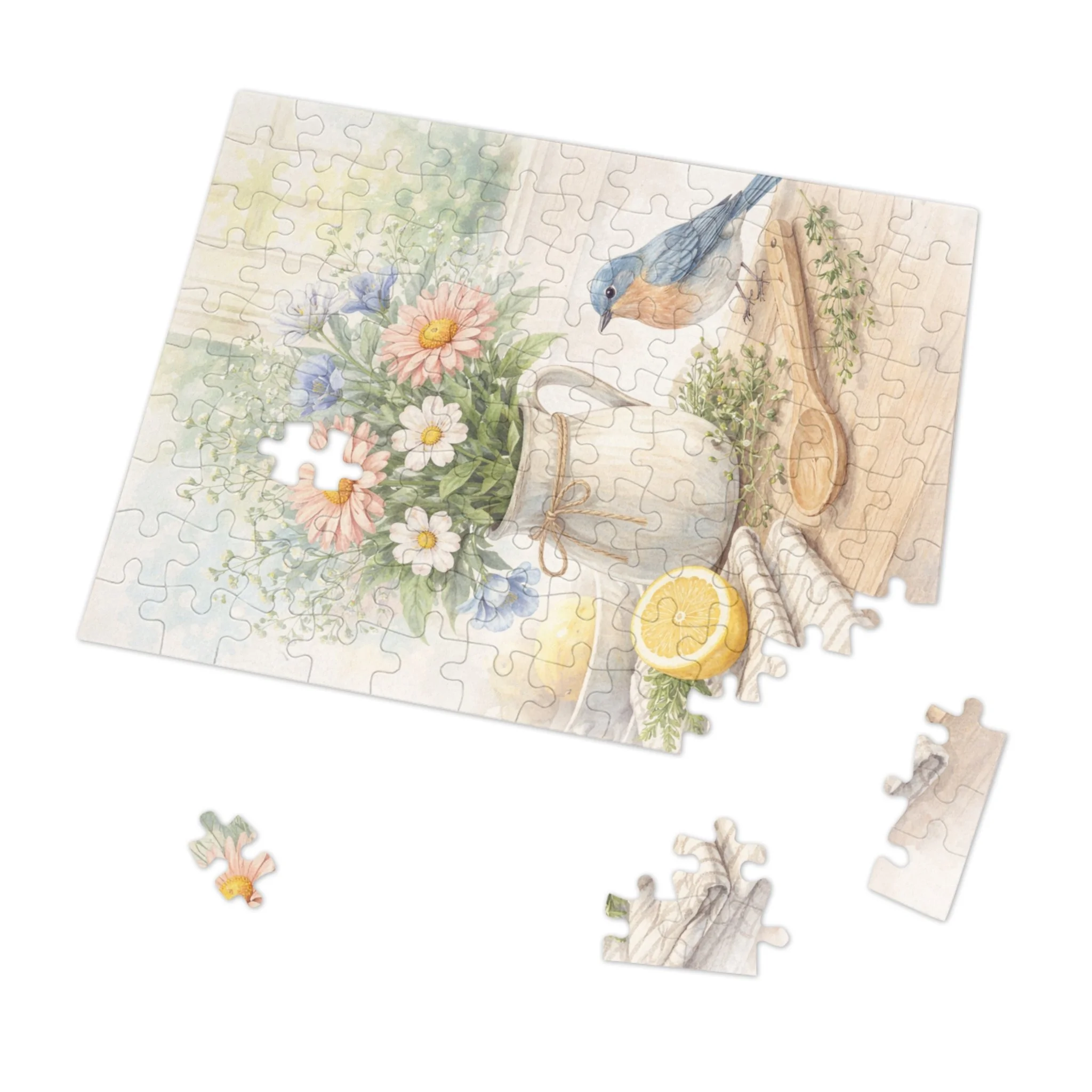 Floral Bluebird Jigsaw Puzzle with Tin — Cottage Kitchen Watercolor Scene