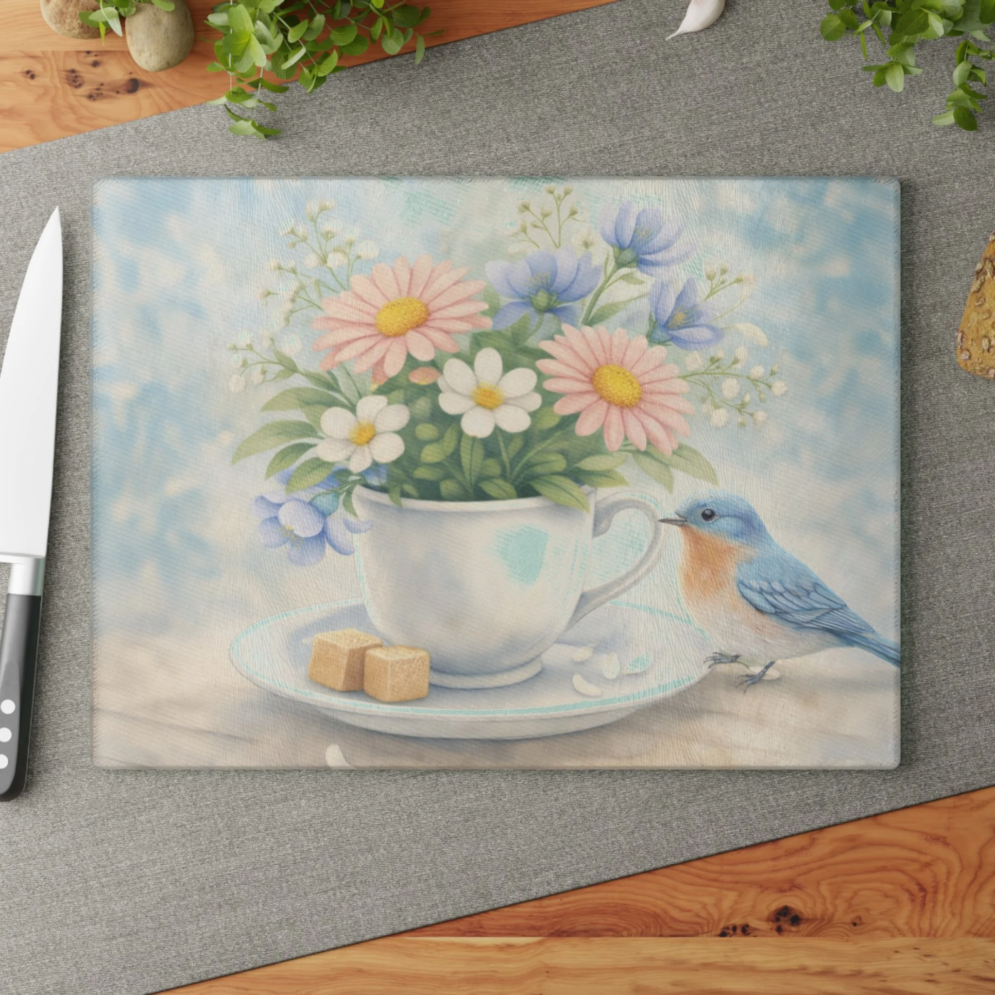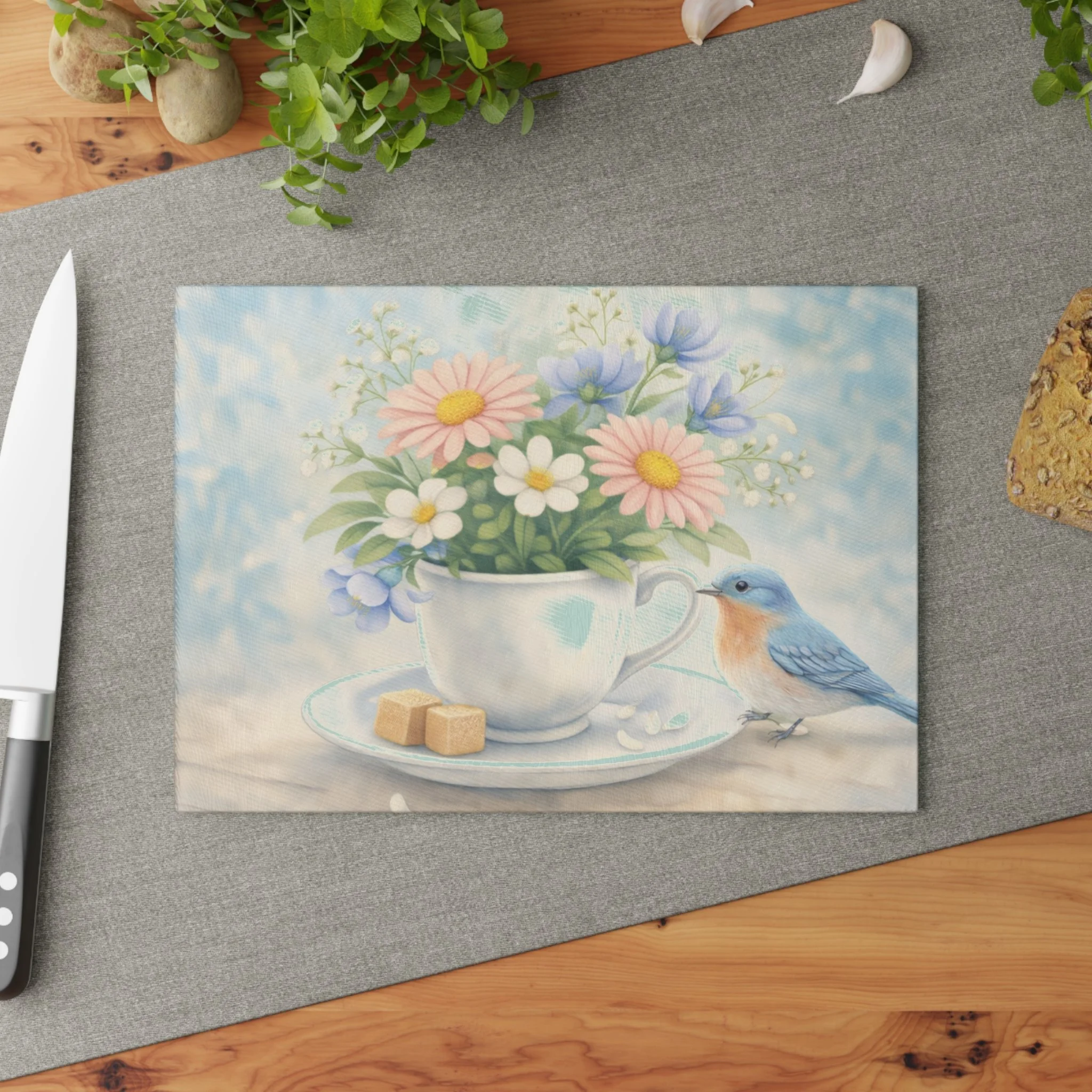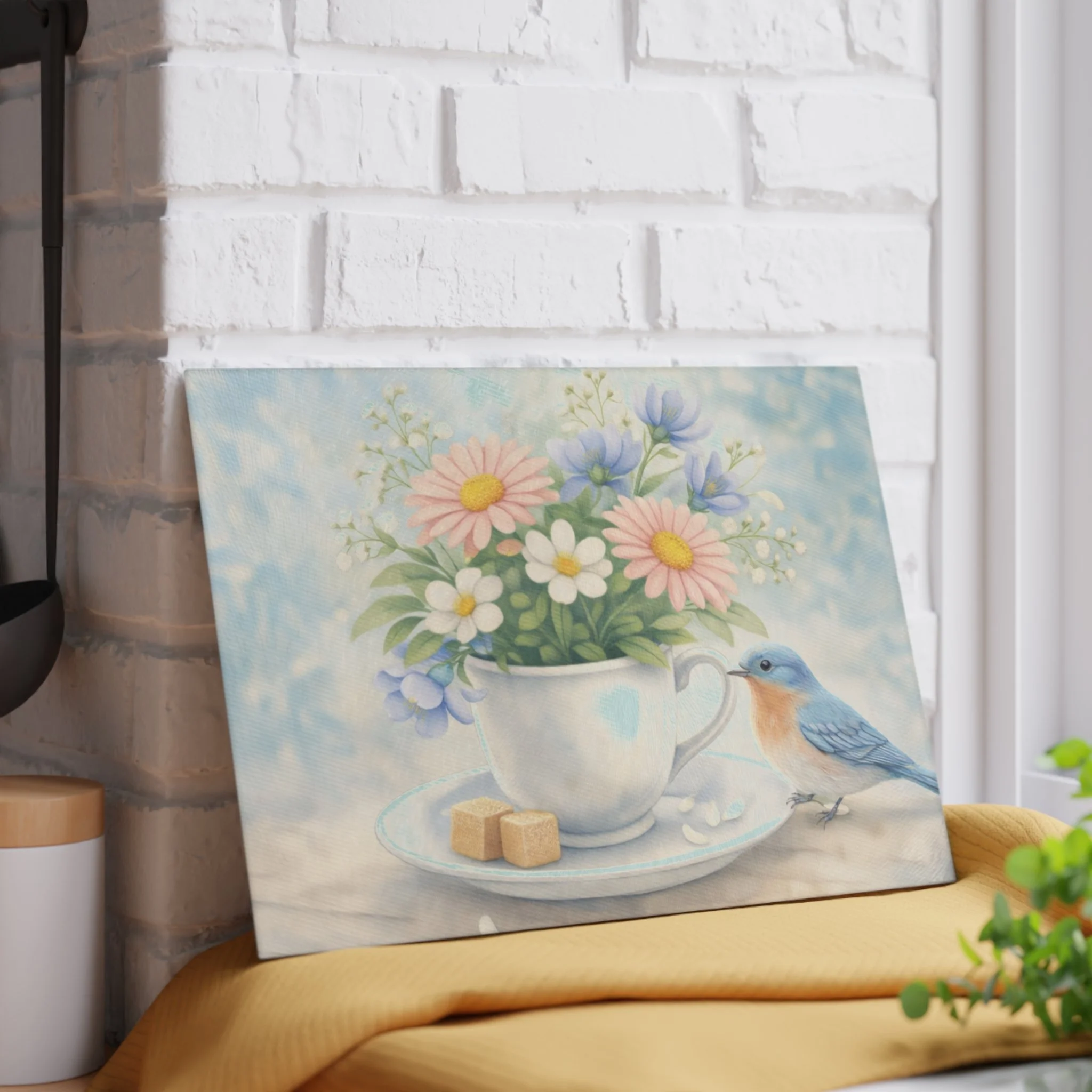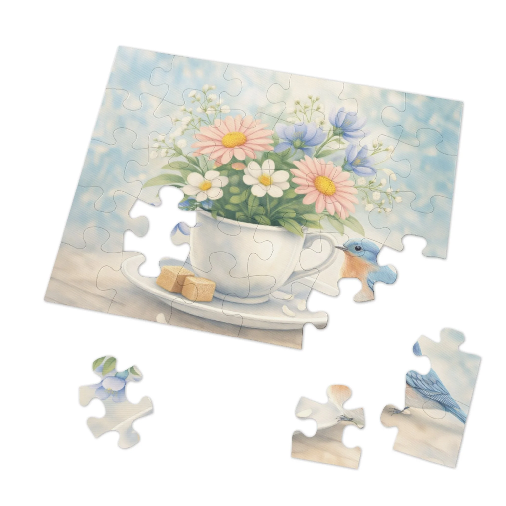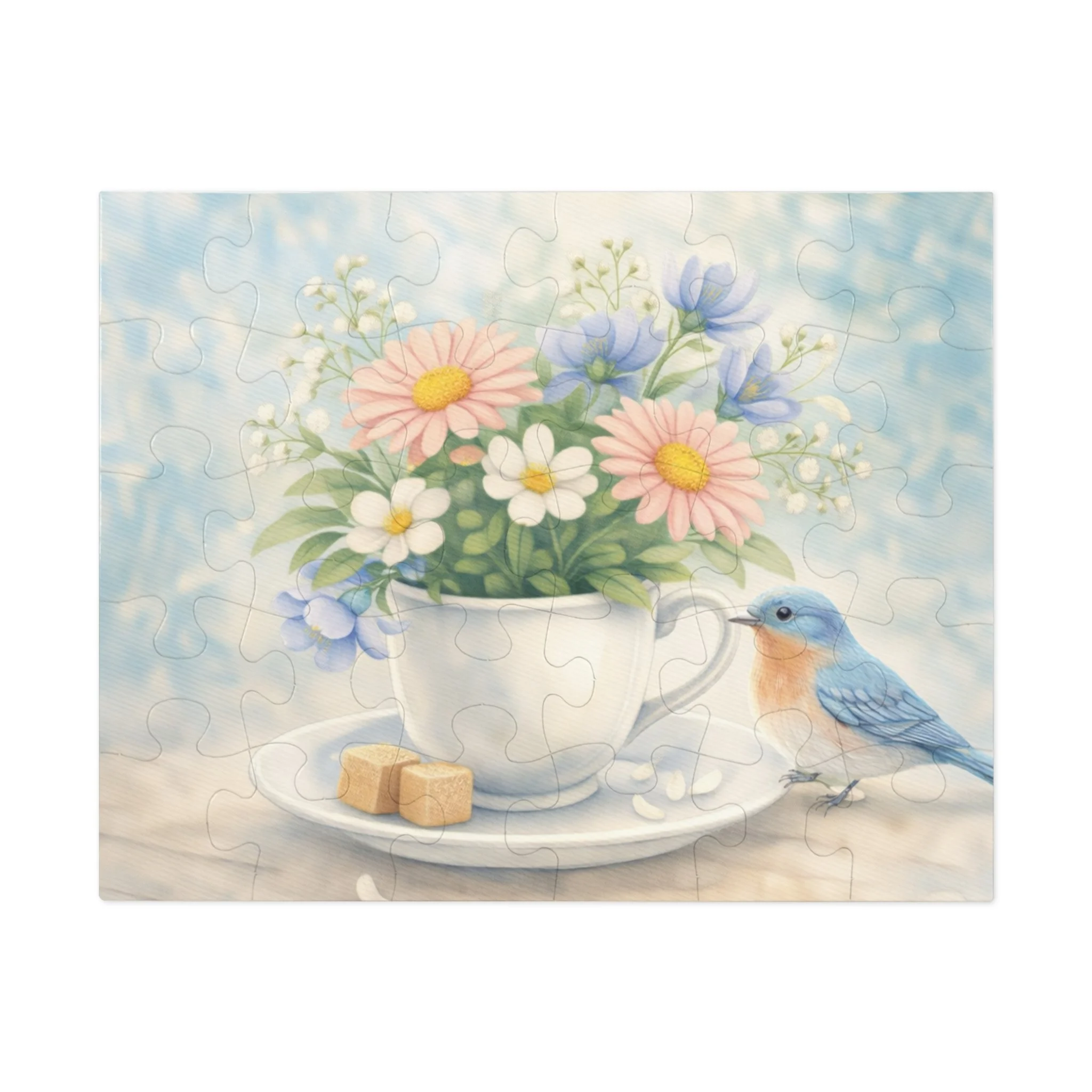 Tea Cup Floral Jigsaw Puzzle with Bluebird Tin Vintage Garden Puzzle
