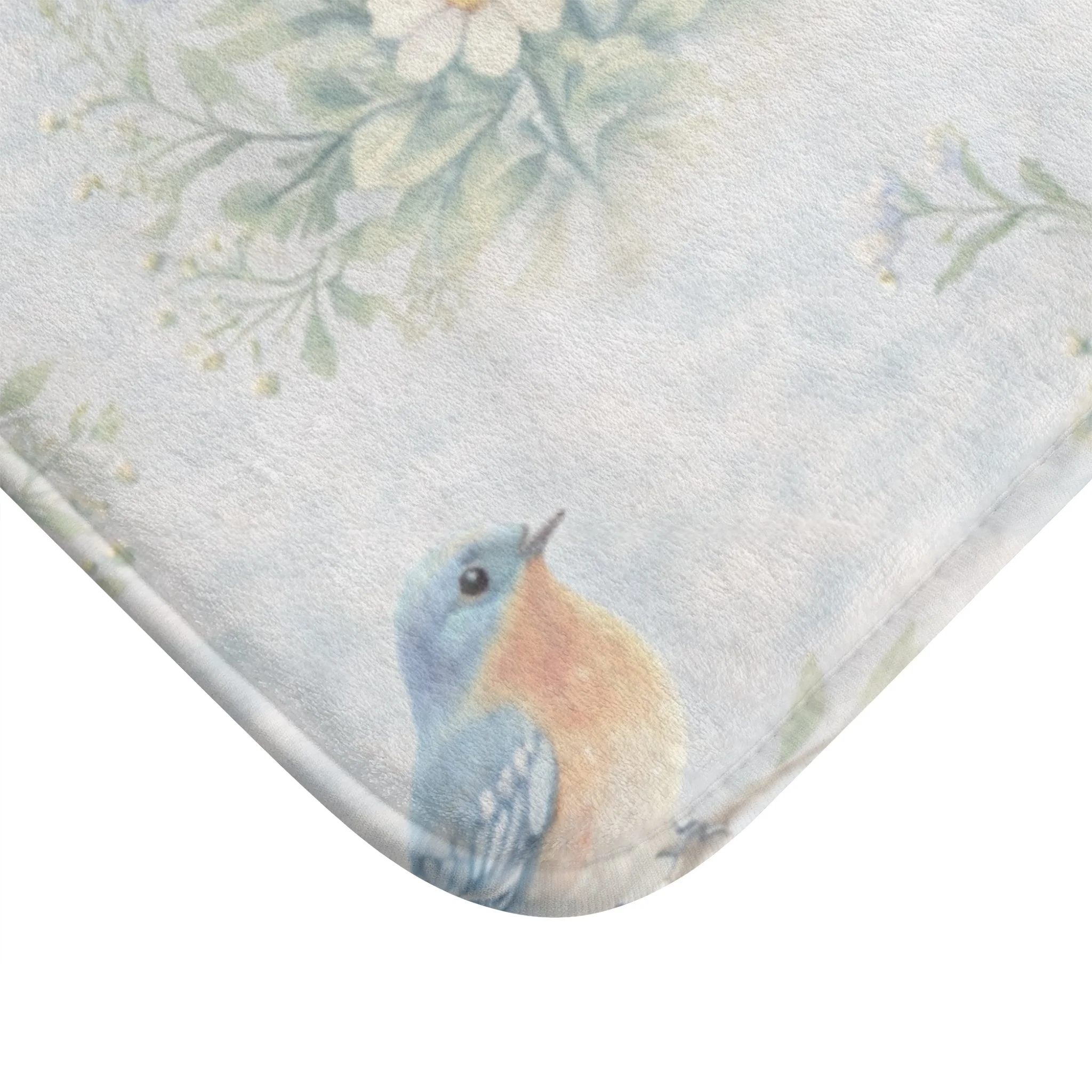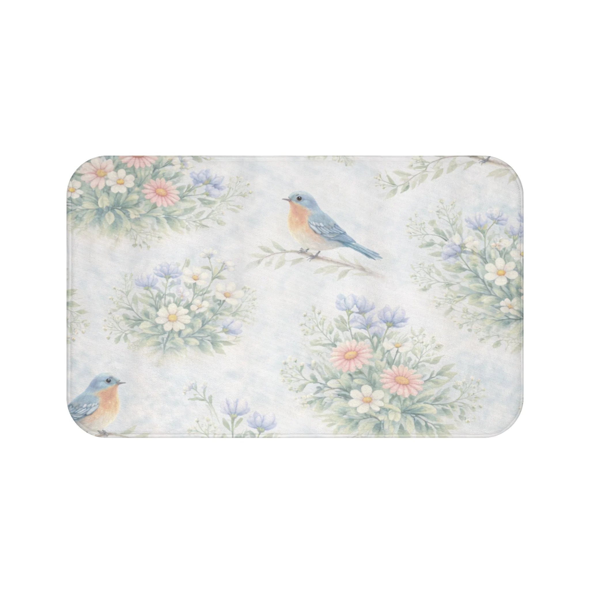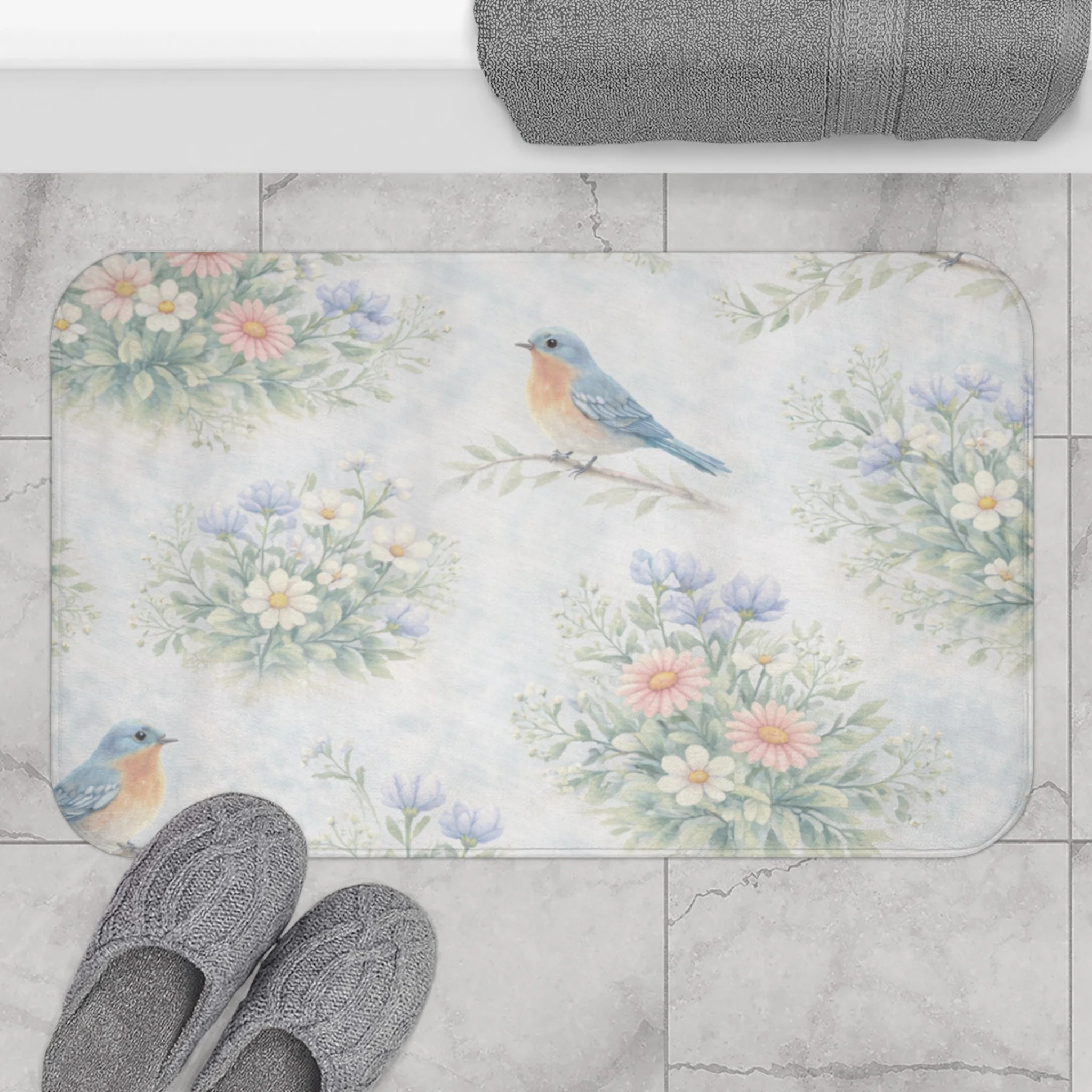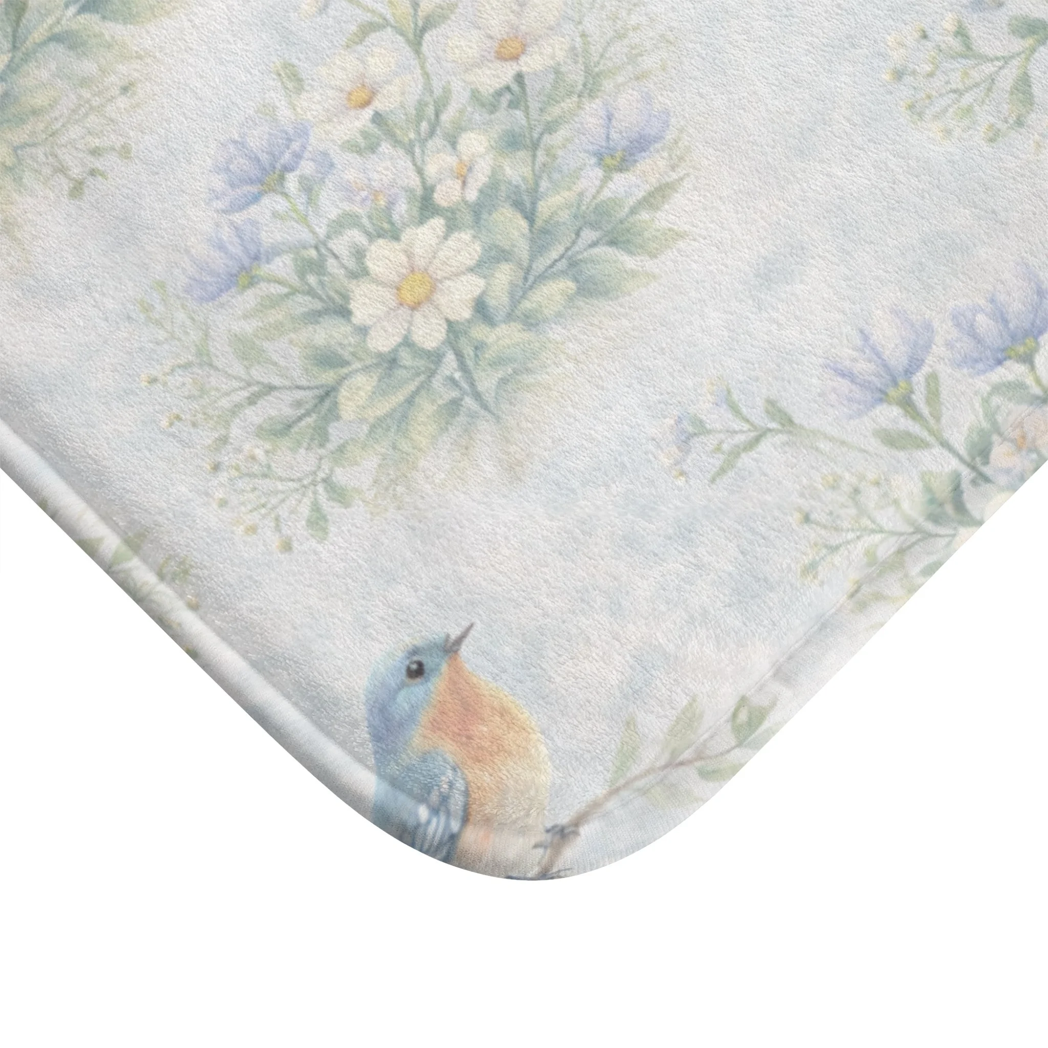 Bluebird Floral Bath Mat — Vintage Cottagecore Bathroom Rug