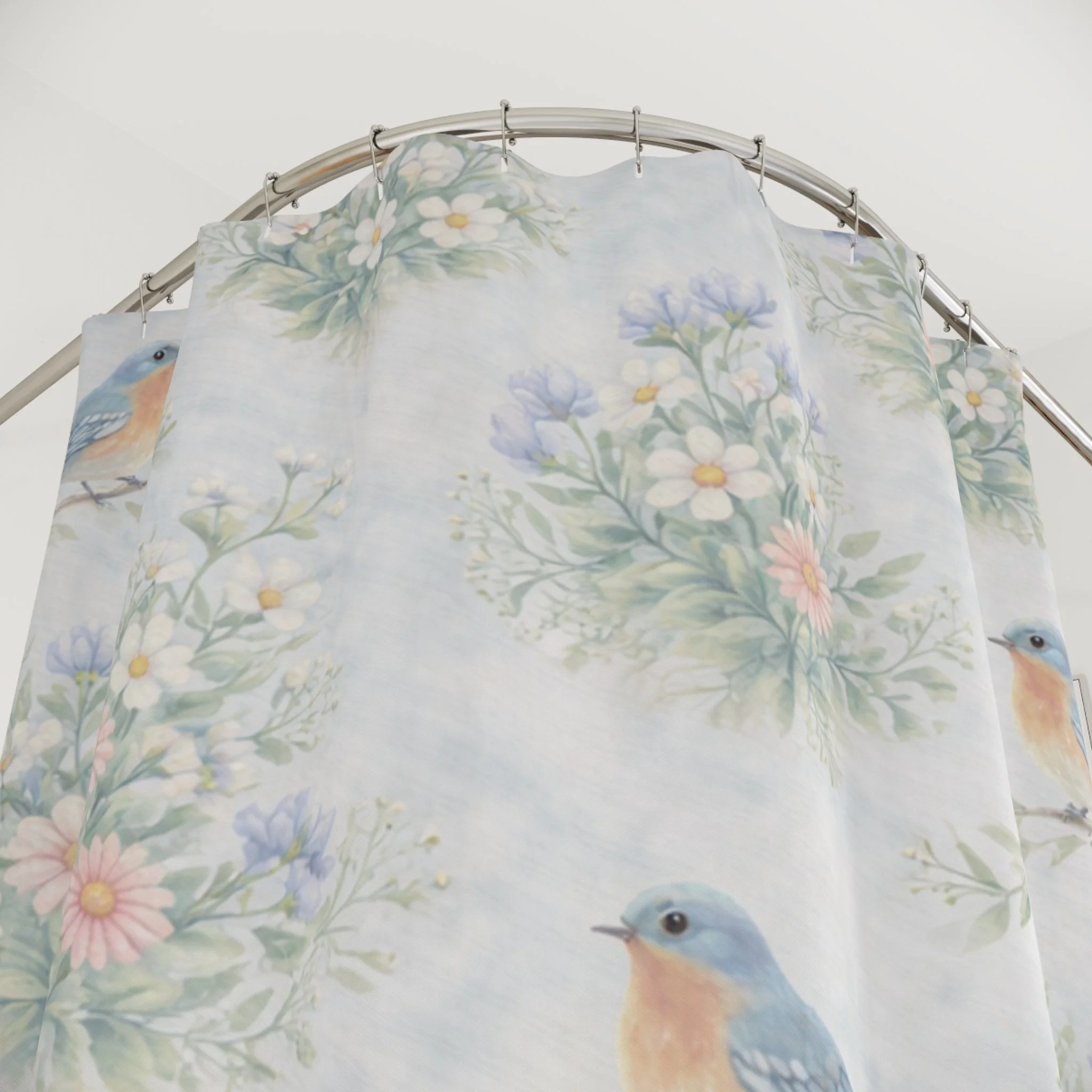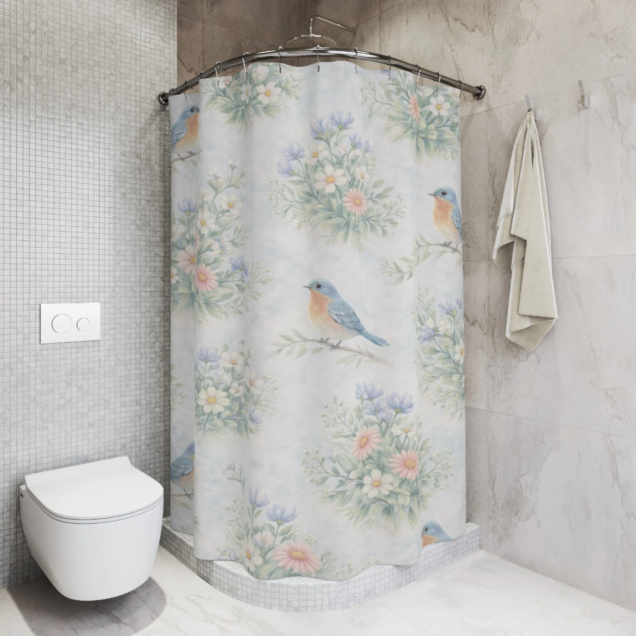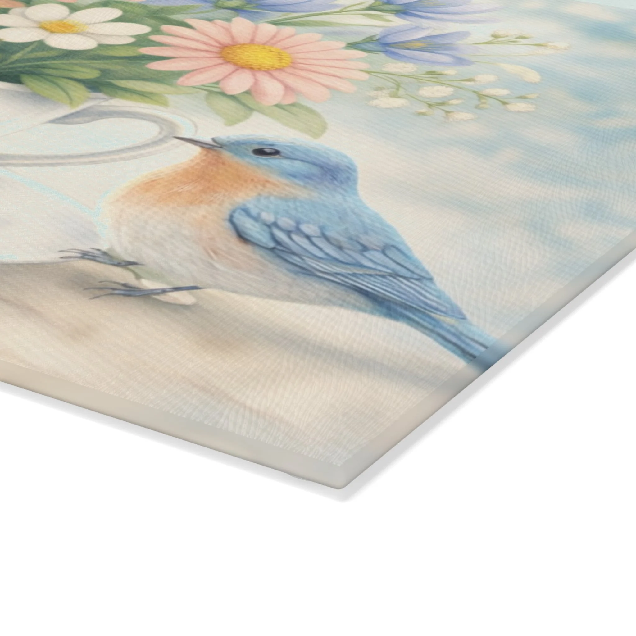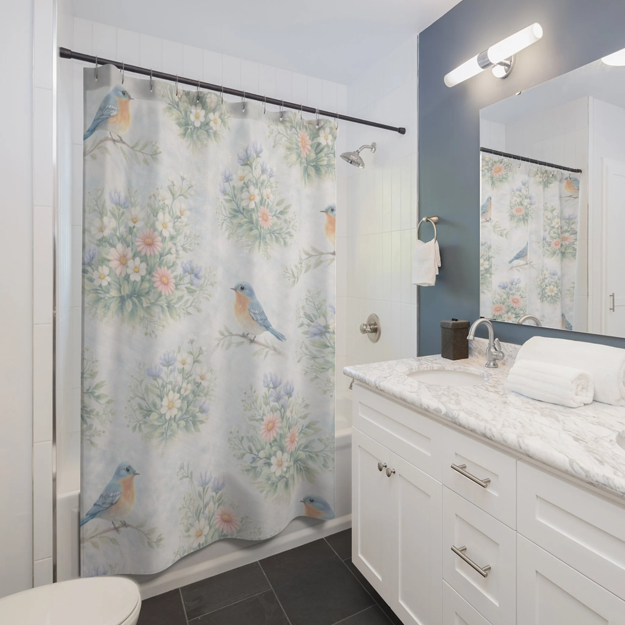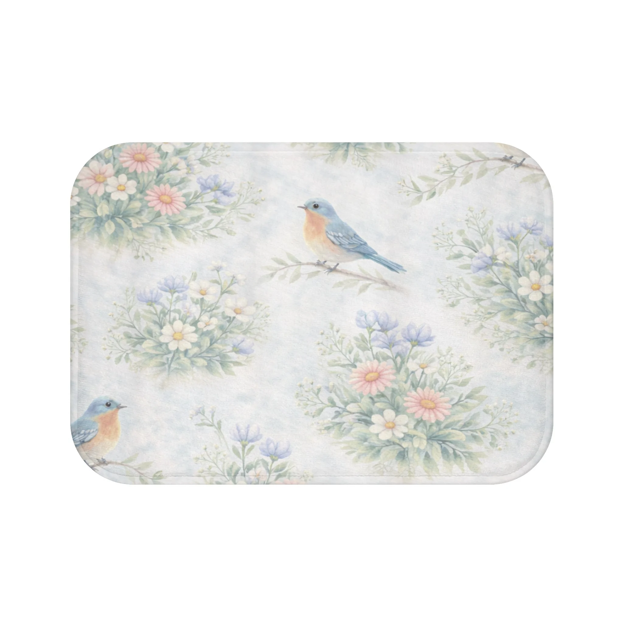 Bluebird Floral Bath Mat — Vintage Cottagecore Bathroom Rug
