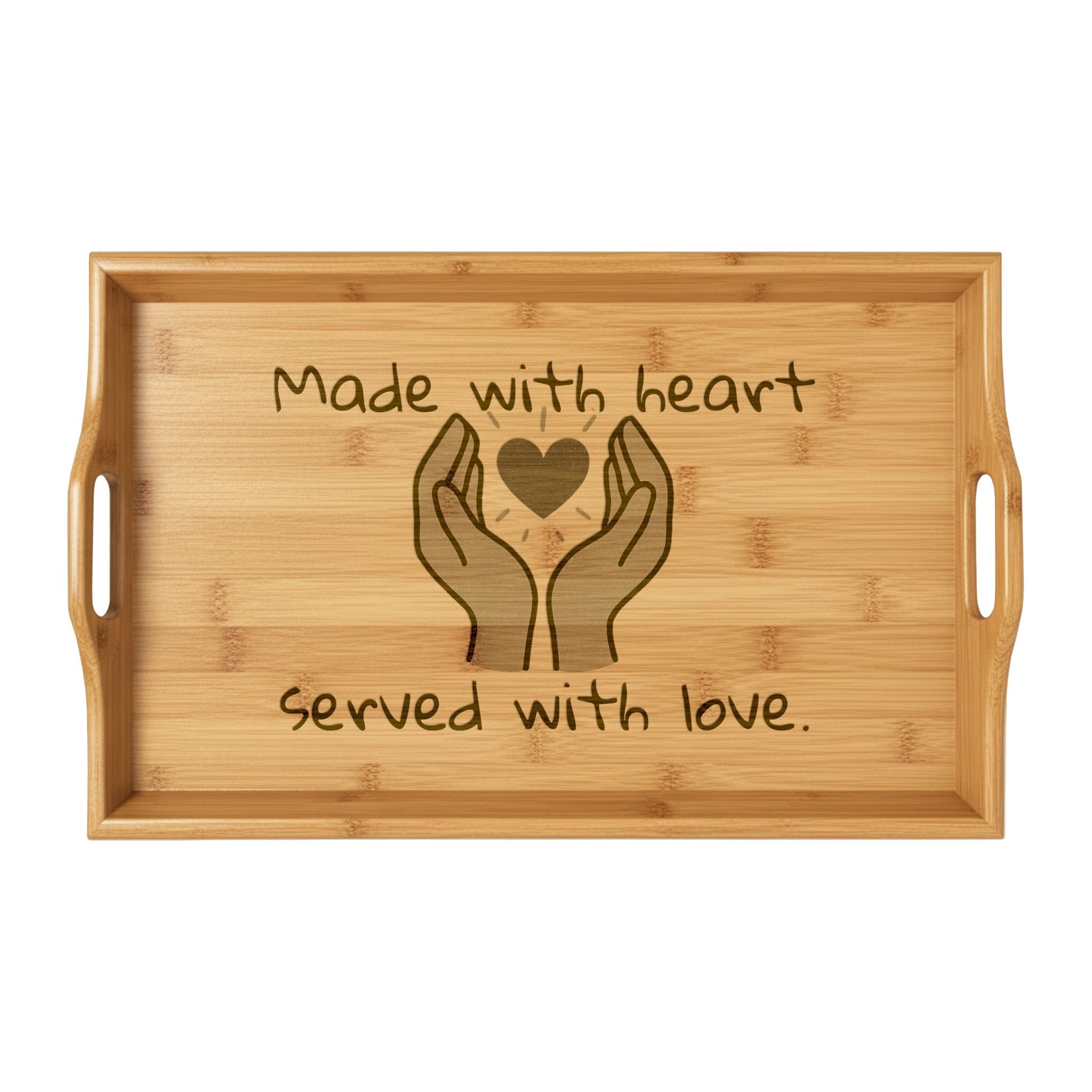 Show appreciation for those who care with their whole heart. This beautifully engraved bamboo serving tray features two gentle hands cradling a heart, paired with the phrase “Made with heart — served with love.” It’s the perfect tribute to caregivers — the quiet heroes who pour compassion into every task.