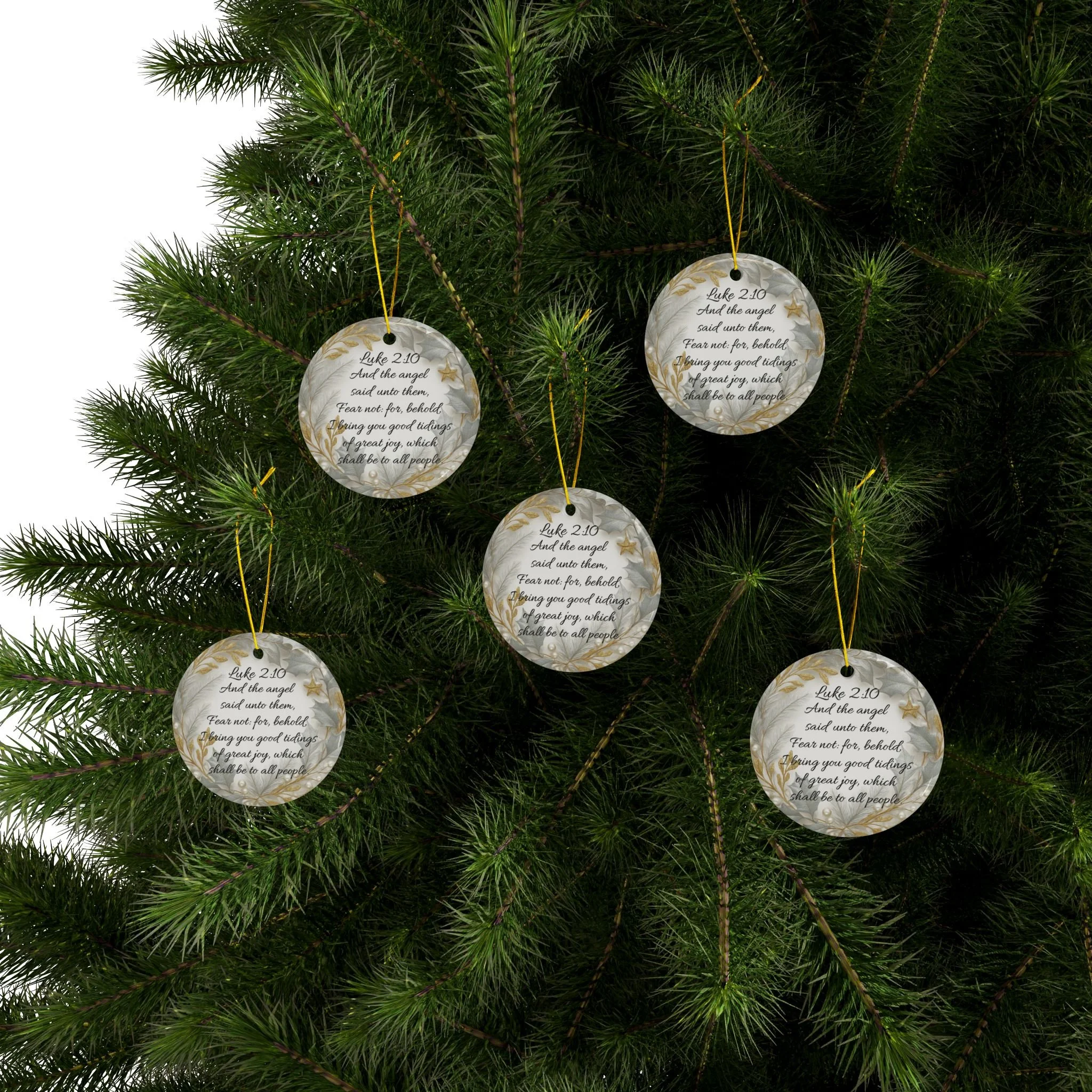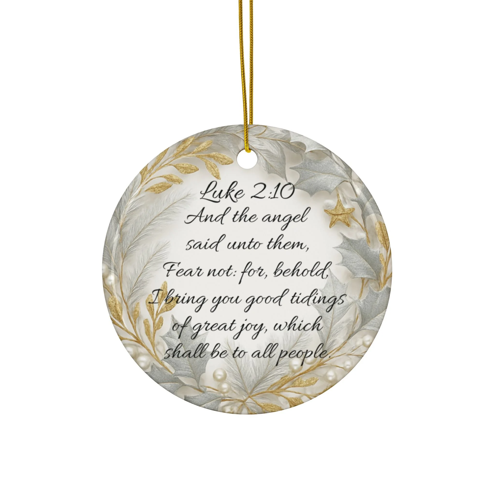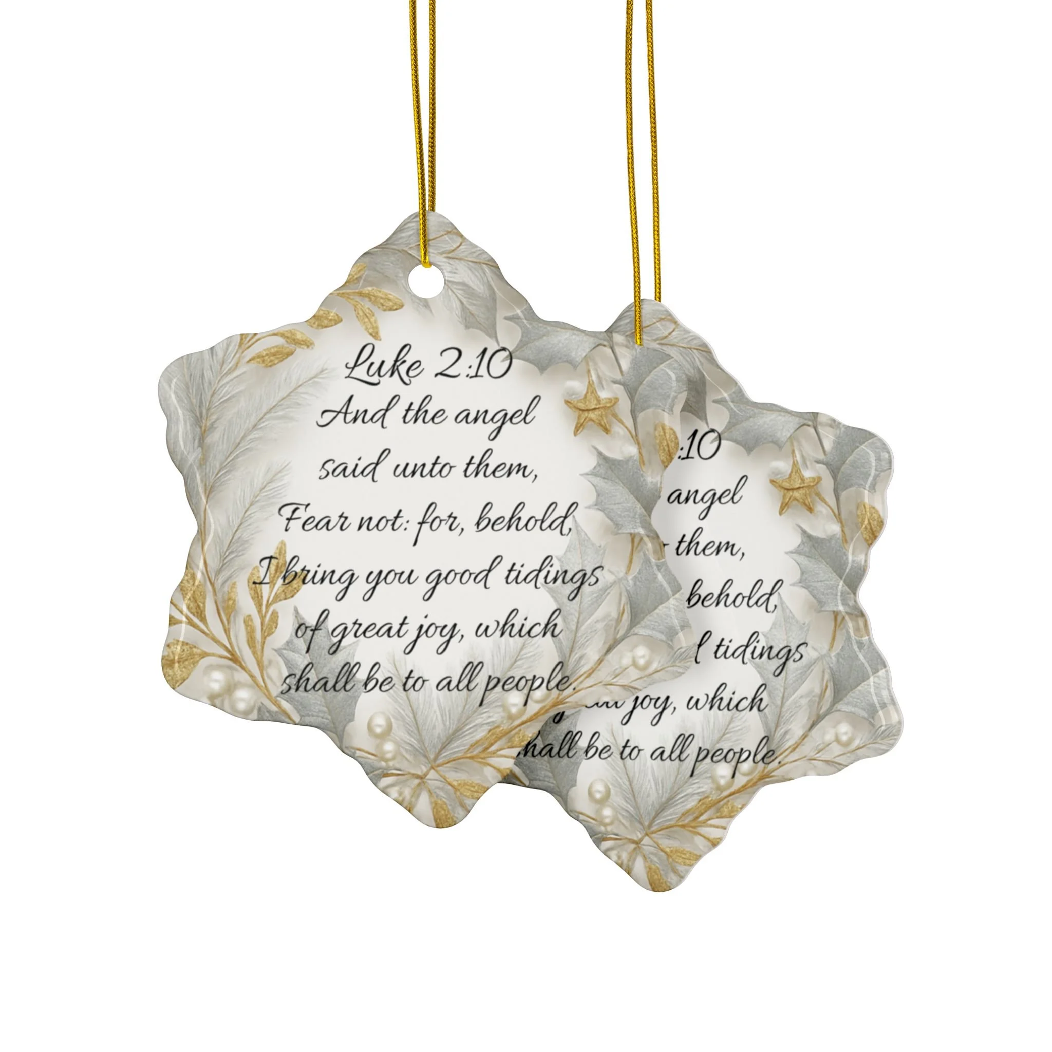 Gold and Silver Scripture Ornaments of Faith (Luke 2:10)