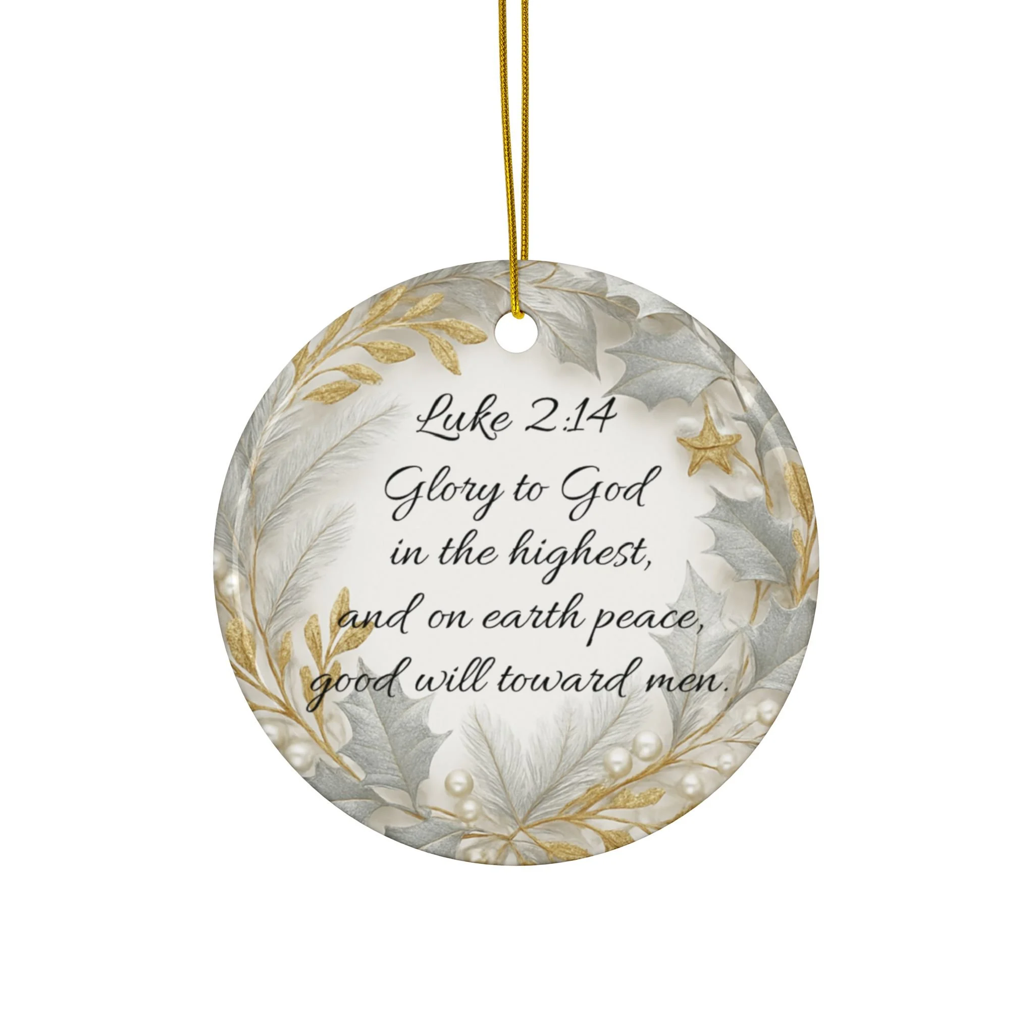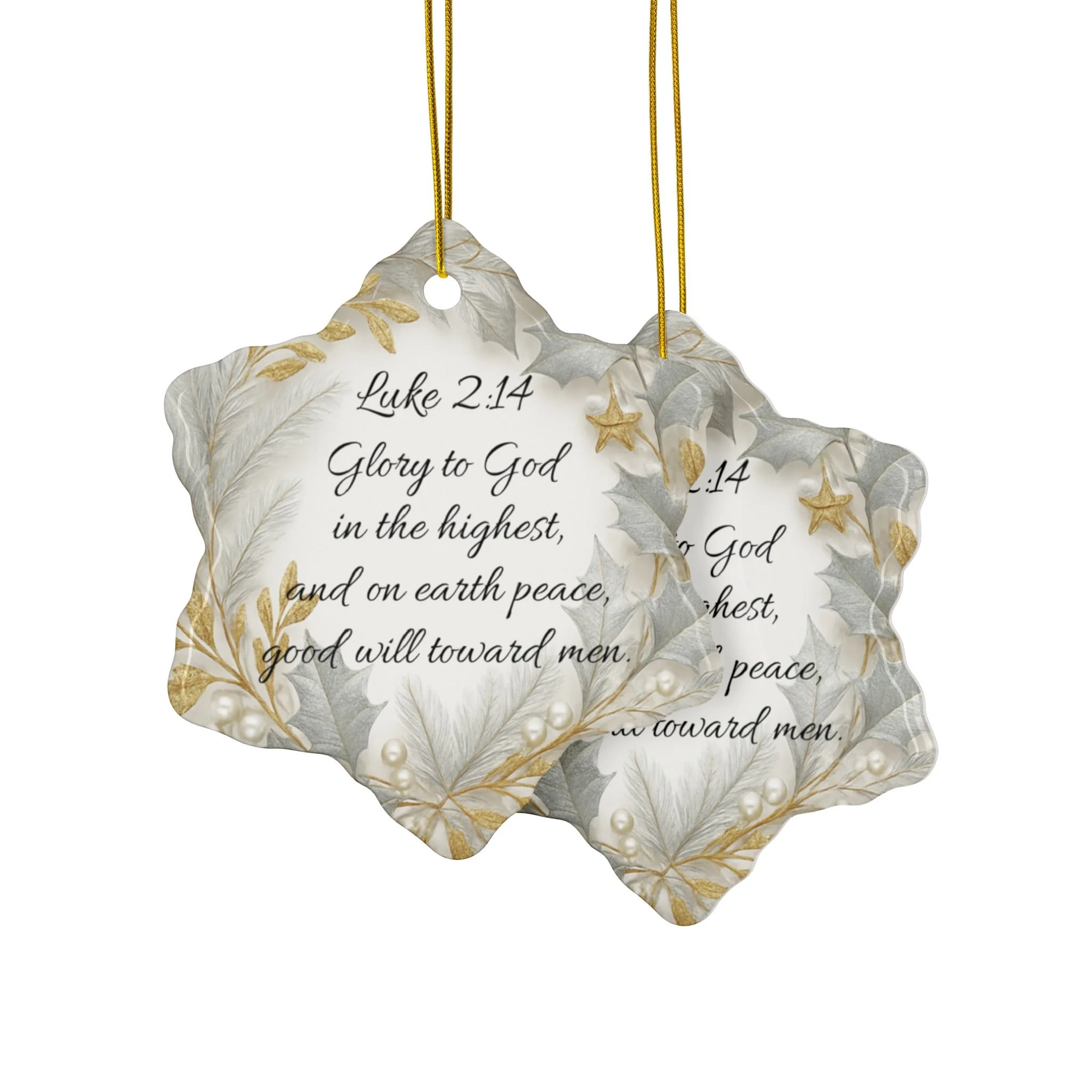 Gold and Silver Scripture Ornaments of Faith (Luke 2:14)
