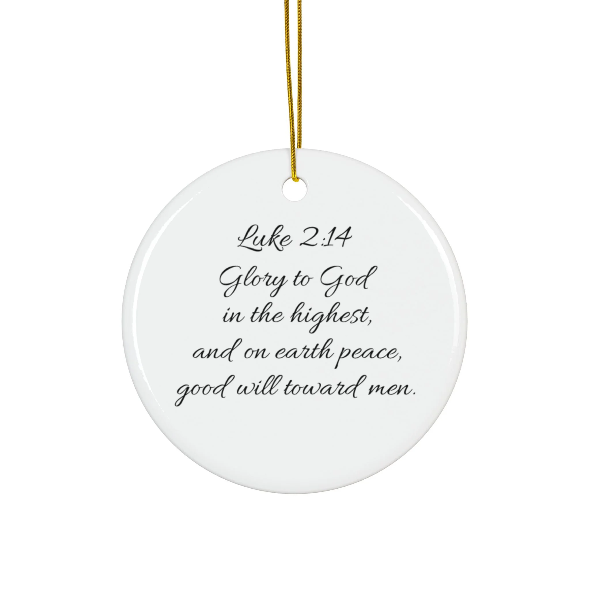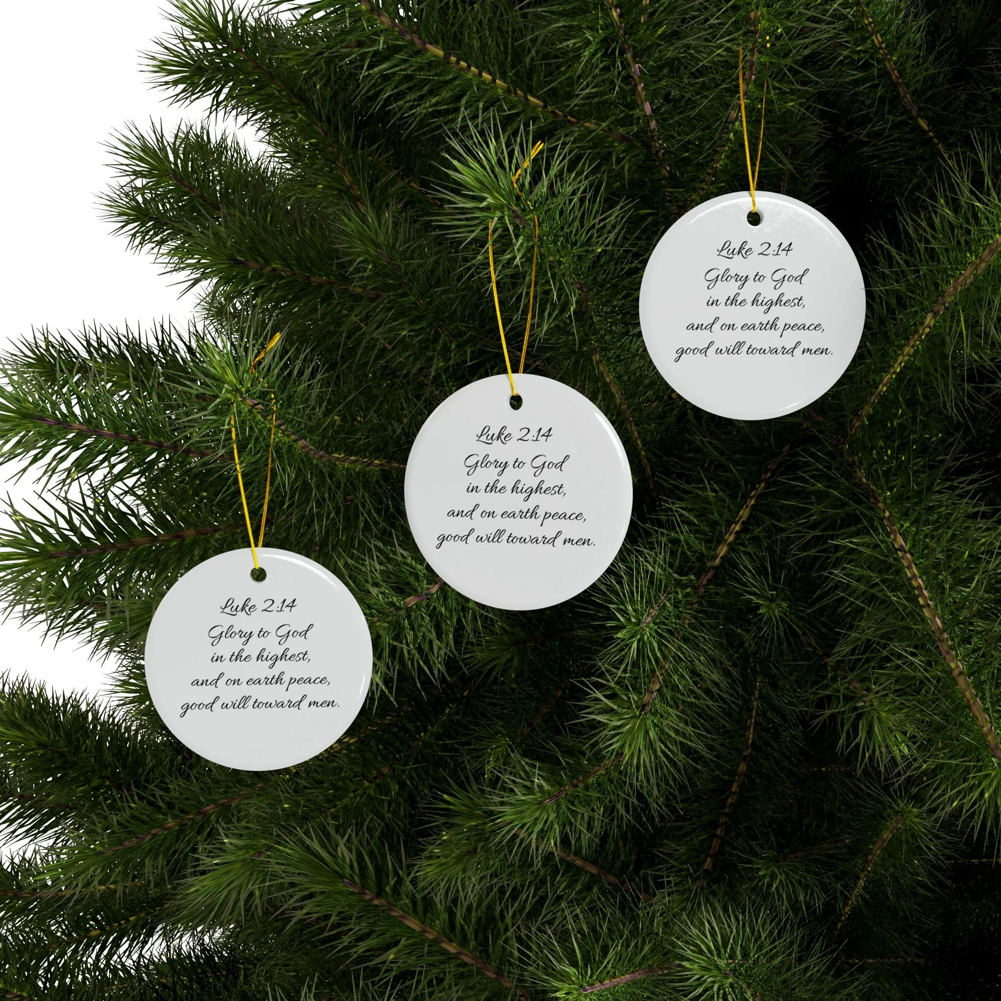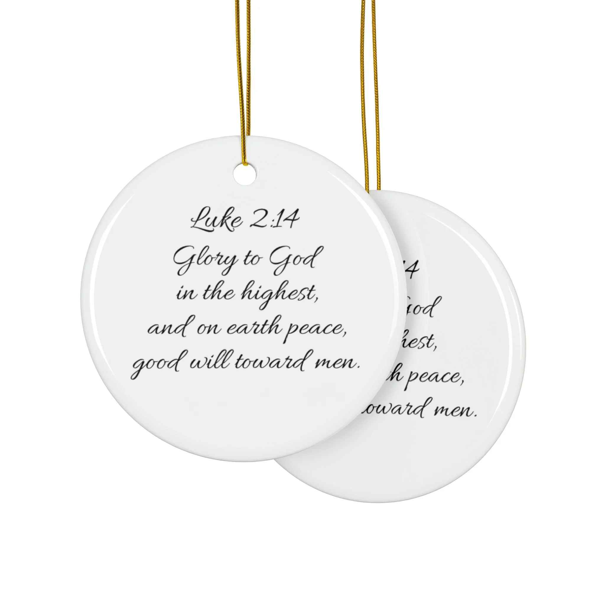 Each ornament is made from durable 100% ceramic and showcases an elegant, two-sided print of the verse. Available in your choice of snowflake or circle design, each piece has a glossy finish and comes with a gold string for easy hanging.